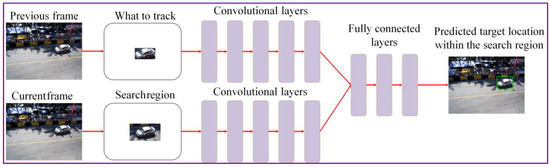 - Held, D.; Thrun, S.; Savarese, S. Learning to track at 100 fps with deep regression net-works. In Proceedings of the European Conference on Computer Vision, Amsterdam, Netherlands, 8–16 October 2016; pp. 749–765. [Google Scholar]