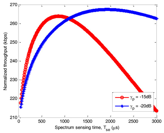 For any detection probability threshold , there exists an optimal sensing time to get the maximum normalized throughput.
