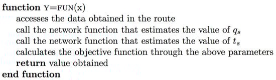 Then, the particle swarm function is applied, as described in Section 3.3 Optimization Algorithm. This function is used to perform the experiment of this case study. The function inputs are: