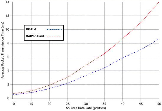 As it can be seen in Figure 3, in COALA protocol the average packet transmission time not only is less than that in DAlPaS Hard, but it is also more robust against the gradual growth of data transmission rate.
