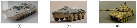 Figure 14. Optical images of three targets. (a) BRDM2; (b) 2S1; (c) ZSU23/4.