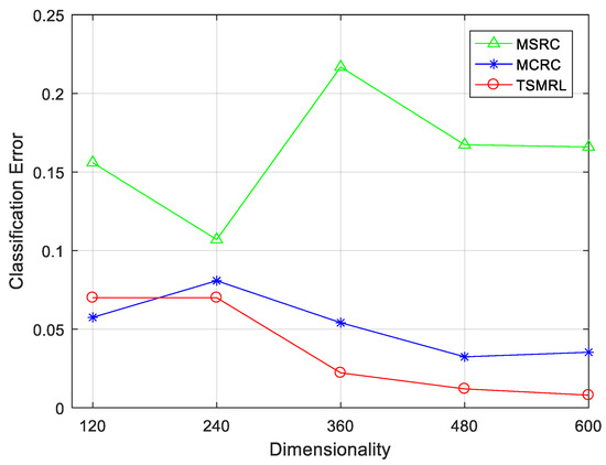 After obtaining the optimal sparse representation vector α ^ , the label of y can be obtained by the minimum reconstruction error discriminant criterion as follows: