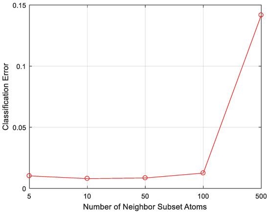 Figure 5. Classification performance of two-stage multi-task representation learning (TSMRL) under different number of neighbor subset atoms.