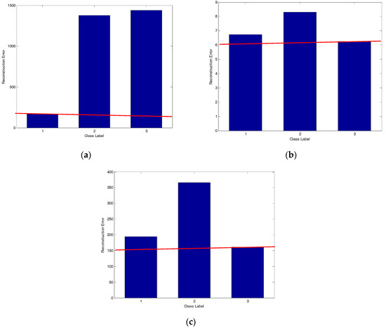 Figure 10. (a) Reconstruction error of TSMRL; (b) reconstruction error of MSRC; (c) reconstruction error of MCRC.
