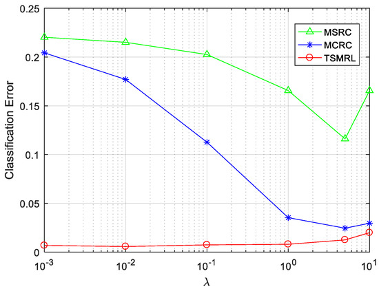 Figure 12. Classification errors of TSMRL with different regularization parameters.