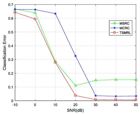 Figure 13. Performance of three algorithms with varying signal-to-noise ratios (SNRs).