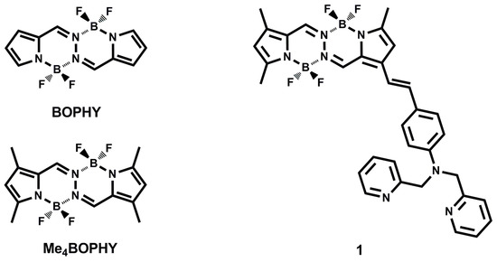 - Tamgho, I.S.; Hasheminasab, A.; Engle, J.T.; Nemykin, V.N.; Ziegler, C.J. A new highly fluorescent and symmetric pyrrole–BF2 chromophore: BOPHY. J. Am. Chem. Soc. 2014, 136, 5623–5626. [Google Scholar] [CrossRef] [PubMed]