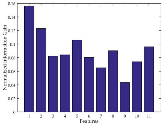 Normalized information gain of the candidate features.
