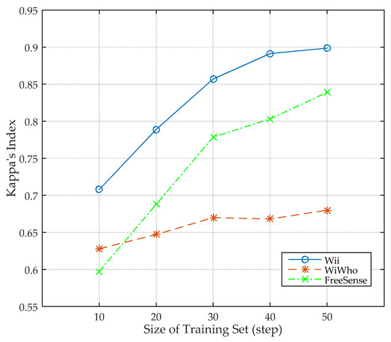 Kappa’s index under different sizes of training set.