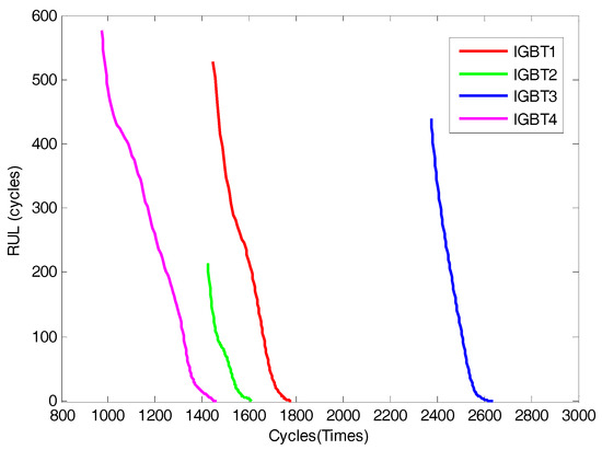 The predicted RULs of the four IGBTs.