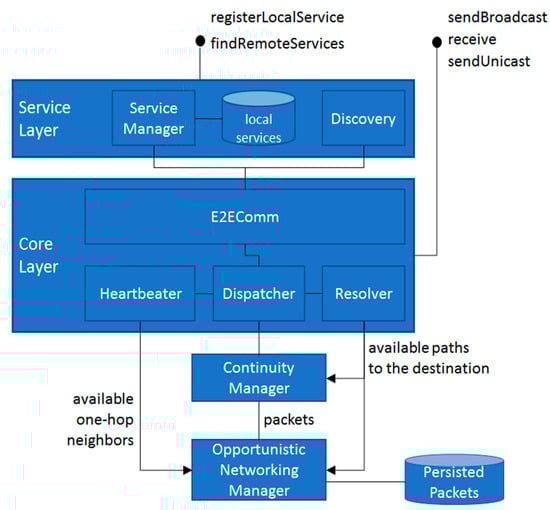 - Bellavista, P.; Corradi, A.; Giannelli, C. The Real Ad-hoc Multi-hop Peer-to-peer (RAMP) Middleware: An Easy-to-use Support for Spontaneous Networking. In Proceedings of the 15th IEEE Symposium on Computers and Communications (ISCC’10), Riccione-Rimini, Italy, 22–25 June 2010. [Google Scholar]