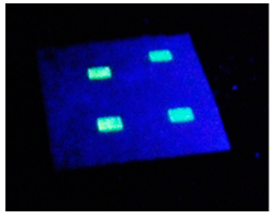 Photograph of the P8T2 IJMP imprinted film on ethylcellulose under UV light.
