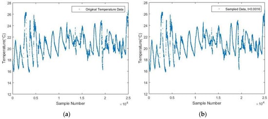 (a) Original Temperature data from Intel Berkeley Research Lab; (b) Sampled Temperature data with 0.0016.