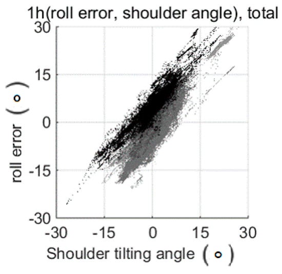Correlation between the shoulder tilting angle from the spine and the roll estimation error. The shoulder angle and spine angle were measured by a camera, and the roll estimation error was calculated using the roll posture from the smart wear and the camera.