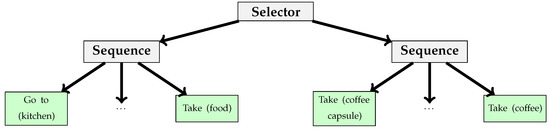 - Colledanchise, M.; Ögren, P. How behavior trees modularize robustness and safety in hybrid systems. In Proceedings of the 2014 IEEE/RSJ International Conference on Intelligent Robots and Systems (IROS 2014), Chicago, IL, USA, 14–18 September 2014; IEEE: Piscataway, NJ, USA, 2014; pp. 1482–1488. [Google Scholar]