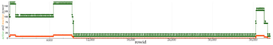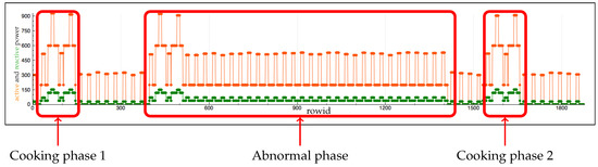 In Figure 20, variations in consumption correspond to activation of the coffee machine, refrigerator (due to the door being opened and closed), the toaster, and the cooker. The cooker is the last device deactivated.