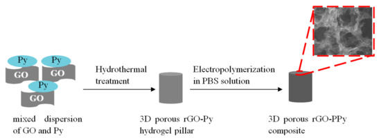 2.3. Preparation of 3D Porous rGO-PPy Composite