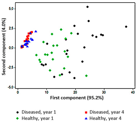 - Cellini, A.; Biondi, E.; Blasioli, S.; Rocchi, L.; Farneti, B.; Braschi, I.; Savioli, S.; Rodriguez-Estrada, M.T.; Biasioli, F.; Spinelli, F. Early detection of bacterial diseases in apple plants by analysis of volatile organic compounds profiles and use of electronic nose. Ann. Appl. Biol. 2016, 168, 409–420. [Google Scholar] [CrossRef]