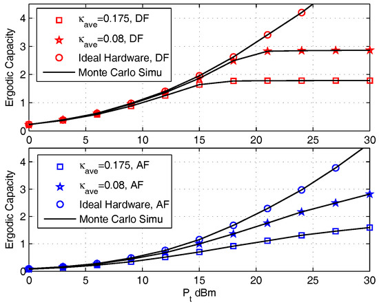 - Bjornson, E.; Debbah, M. A new look at dual-hop relaying: performance limits with hardware impairments. IEEE Trans. Commun. 2013, 61, 4512–4525. [Google Scholar] [CrossRef]