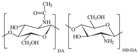 Chitosan is a polysaccharide produced by chemical modification of a natural polymer—chitin. The biocompatibility, biodegradability, immuno-stimulating features, high chemical reactivity of chitosan provides its extensive usage in a variety of biomedical and bioengineering applications [13]. Chitosan is a polyelectrolyte, whose typical molecular structure is shown in Figure 1.