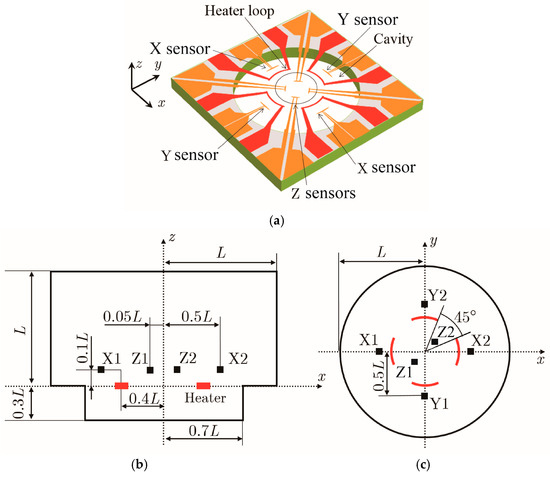 - Rocha, L.A.; Silva, C.S.; Pontes, A.J.; Viana, J.C. Design of a 3-axis thermal accelerometer using an electro-thermo-fluidic model. In Proceedings of the 13th International Conference on Thermal, Mechanical and Multi-Physics Simulation and Experiments in Microelectronics and Microsystems (EuroSimE 2012), Lisbon, Portugal, 16–18 April 2012. [Google Scholar]