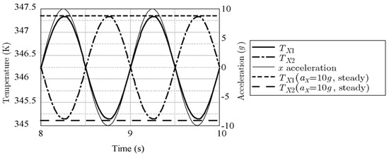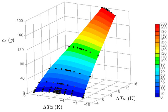 - By monitoring the temperatures at two positions and making use of cross-axis sensitivity, a unique acceleration can be determined even when the range of vertical acceleration is very large, such as −10,000–10,000 g.