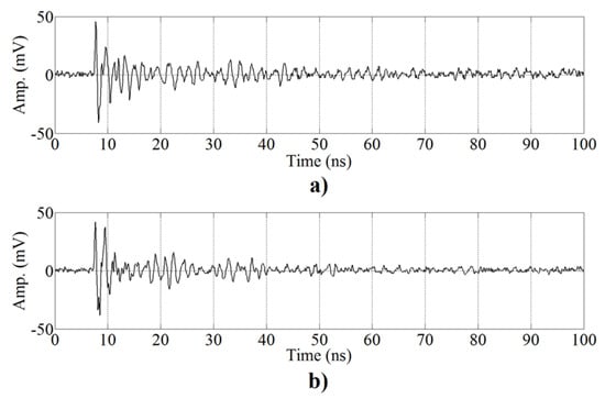 Representative UHF signals from the two surface test objects. (a) and (b) .