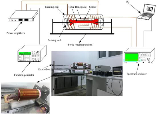 Fracture is a common injury in the skeletal system, which happens at all ages and exerts a detrimental influence on human life. The key to successful bone unions is to use the appropriate fixation devices and accurate determination of the bone healing state. Many fixation devices, including external fixation, intramedullary nails, bone plates, wires, and pins, are used to restore diaphyseal fractures. Compared with other surgical interventions, internal fixations using bone plates show promising results. Therefore, bone plates are used widely in bone fracture treatments [1,2,3,4,5]. It is found in clinical work that most patients urge that fixation devices be taken out, so sound judgement about the healing state has a prominent influence on treatment results. At present, bone healing state detection depends upon periodical X-ray image examination after the bone plate is clinically implanted for treatment. This method relies on doctors’ clinical experience to a large extent. Once a wrong judgement is made and the bone plate is taken out prematurely, the bone fracture will not mend completely and the risk of future bone fractures will increase. On the contrary, if the bone plate is not taken out in time after the bone heals, the bone will grow excessively, which makes it difficult to remove the bone plate and locking screws. This leads to the retention of fixation devices [6,7]. In the early state of bone fracture healing using bone plates, the bone plate withstands most of the external force and endures greater stress. As the bone heals, the stress on the bone plate decreases gradually. Therefore, it is of great significance for bone fracture patients that judge bone healing state can be judged by detecting variations in bone stress.