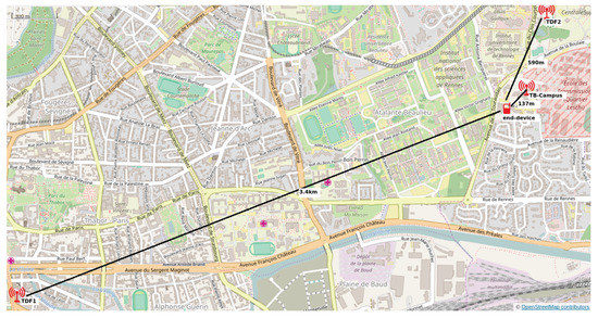 - Petrić, T.; Goessens, M.; Nuaymi, L.; Toutain, L.; Pelov, A. Measurements, performance and analysis of LoRa FABIAN, a real-world implementation of LPWAN. In Proceedings of the 2016 IEEE 27th Annual International Symposium on Personal, Indoor, and Mobile Radio Communications (PIMRC), Valencia, Spain, 4–8 September 2016; pp. 1–7. [Google Scholar]