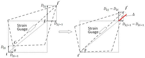 When strain is measured, the strains can be formulated as the linear combination of displacement states, then the general relation Equation (27) can be rewritten as: