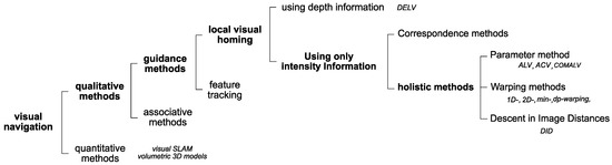 Figure 1. Furthermore, intensity-based approaches can be divided into holistic methods and correspondence methods. Correspondence methods match extracted features in the images and thus need a complex algorithm to process feature extraction and feature matching. If there is a reference compass available, the one-to-one correspondence matching can be omitted. Holistic methods try to match the whole pixel information in the two images without extracting landmark features or classifying the features. Holistic methods have relatively low complexity.