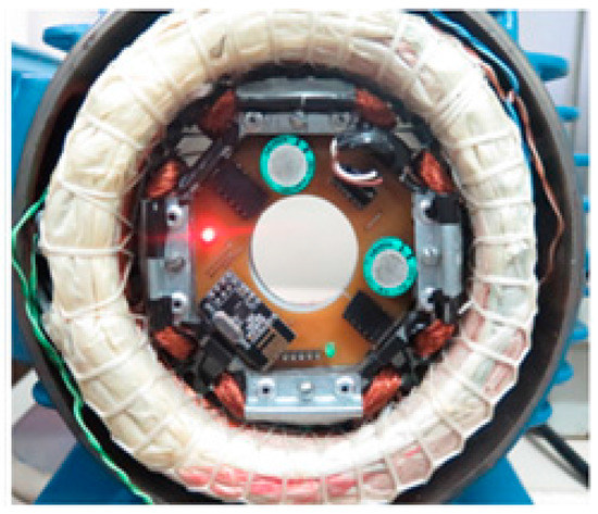 The rotor has a diameter of 99.0 mm, so a core diameter of 96.0 mm was defined for the generator in order to avoid collisions with the stator. The generator device core was laminated to minimize eddy current losses [11,21,22]. The embedded system will be fixed to the rotor, more specifically to the extensions of the aluminum bars shown in Figure 7.