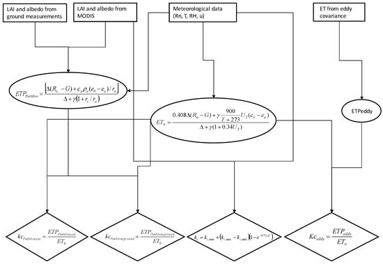 In addition to above mentioned methods for crop coefficient assessment, Equation (12) is applied (kcFAO). A schematic of the methodology followed in this research is illustrated in Figure 1.