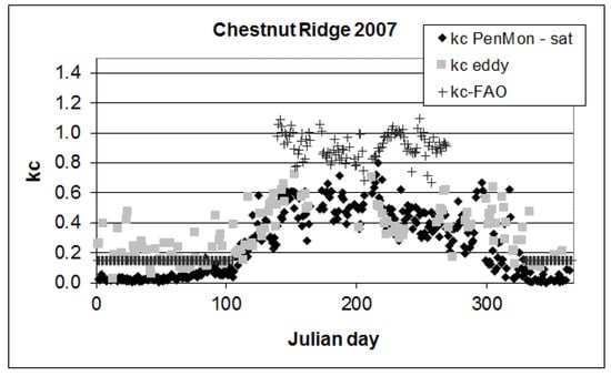 Crop coefficient values for Chestnut Ridge eddy covariance station for 2007.