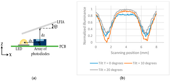 The illuminance across the array of photodiodes was also investigated when the LFIA is tilted in the