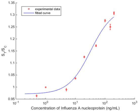 23] in the concentration range of 0.5 ng/mL to 200 ng/mL of Influenza A nucleoprotein in saline buffer as shown in
