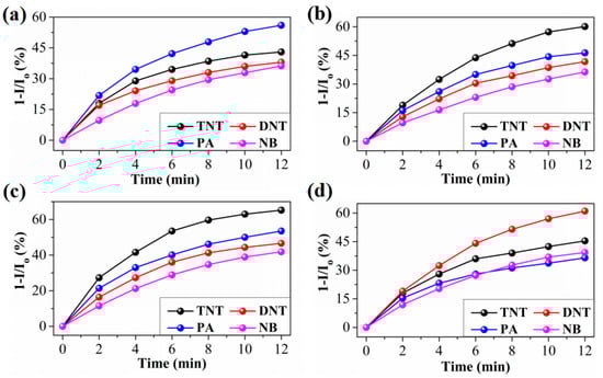 2.6. Quenching Tests of Fluorescent Nanofibrous Membranes towards Nitroaromatic Explosives