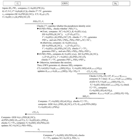 - GEK KP, KGWN-S KP, where GEK = h1(rA||PIDi1||Ki||NCi); and