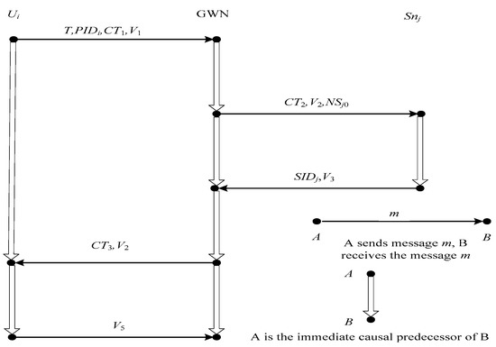 In order to prove Proposition A4, we can refer to the GWN’s strand as a responder’s strand of the user or a initiator’s stand of the sensor node. As the responder’s strand and as the initiator’s stand, the processes of proofs are similar with Proposition A1. Take the case of GWN as an responder’s strand, we only consider the set S = {a ∈ C: {V4} term(a)} is non-empty. Because <s2,2> is the element of S, S has at least a minimal element a0. If a0 is on the regular strand g, it is easy to prove g ∈ G[IDi,SIDj,rA,PIDi0, PIDi1,Ki,NCi,sk,KGWN-S, NSj0]. Otherwise, g should be on the H strand with trace<-GEK,-rA||sk||PID0, + {V4}>. Obviously, it is contradictory because GEK KP. Therefore, C contains a GWN’s strand with trace G[IDi,SIDj,rA,PIDi0, PIDi1,Ki,NCi,sk,KGWN-S, NSj0]. Proposition A1–Proposition A4 show that our scheme is a secure mutual authentication scheme among the user, the GWN and the sensor node. ☐
