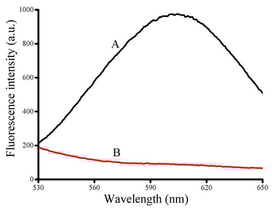 All fluorescence measurements were performed on an F-2700 spectrophotometer (Hitachi, Tokyo, Japan) with excitation at 340 nm and emission at 530–650 nm for the poly T-templated CuNPs. The excitation slits and emission slits were set for 10.0 and 10.0 nm, respectively. Each experiment was carried out in a final volume of 100 µL.