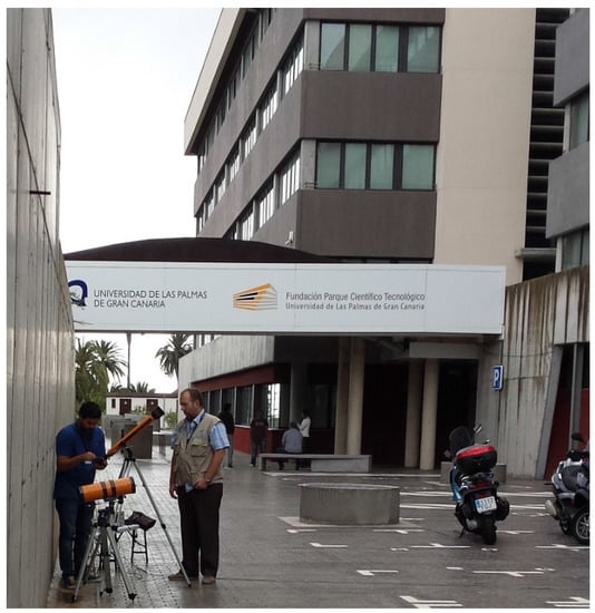 For the experimental part of the work, a similar simulation was performed using an emitter located on the second floor of the IDeTIC building at the “Universidad de Las Palmas de Gran Canaria”. Of the possible points from which the eavesdropping was tried, four were chosen. The distances, direct and vertical of those positions, are listed in Table 2.