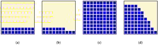 Representations of the expected LEDs viewed from the different locations as simulated: (a) at T1; (b) at T2; (c) at T3; and (d) at T4 as defined in Table 2.