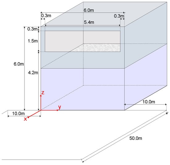 A standard scenario [17,18,19] was modified to consider an outdoor eavesdropping. The room was changed by the addition of a window m wide by m hide located m from the floor and m from the side walls and ceiling. The room was located on a second floor as shown in Figure 11 so the window was at the height of m from the street. The expected location for the eavesdropper considered the street and parking area located on the front of the building where the emitters were located. All this area was defined as the target area from which an attack was possible, and it was delimited in an area of m wide by m long.