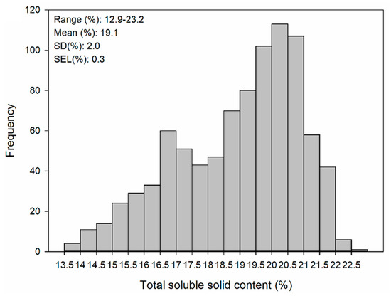 - Paz, P.; Sánchez, M.T.; Pérez-Marín, D.; Guerrero, J.E.; Garrido-Varo, A. Nondestructive determination of total soluble solid content and firmness in plums using near-infrared reflectance spectroscopy. J. Agric. Food Chem. 2008, 56, 2565–2570. [Google Scholar] [CrossRef] [PubMed]