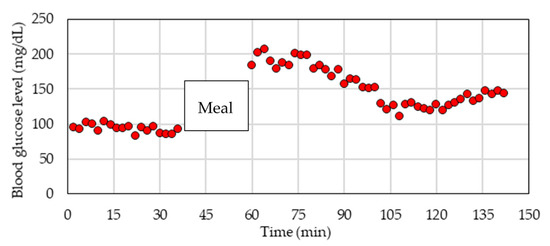 3.2. Blood Glucose Level Calculated by Calibration Curve