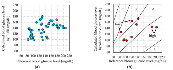 - Parkes, J.L.; Pardo, S.; Slatin, S.L.; Ginsberg, B.H. A new consensus error grid to evaluate the clinical significance of inaccuracies in the measurement of blood glucose. Diabetes Care 2000, 23, 1143–1148. [Google Scholar] [CrossRef] [PubMed]