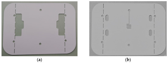 (a) The layout of the sensor after the lamination process; (b) The layout of the fabricated sensor—top and bottom view.