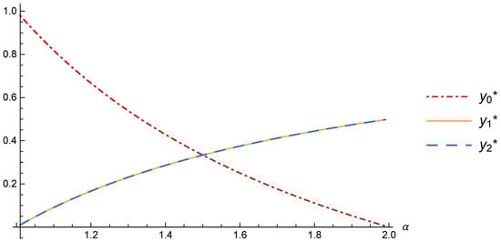 which proves (19). Figure 4 shows a particular case of the demonstration, where we can see how  for the range of interest . With the previous demonstration, OP optimal profit can be simplified to: