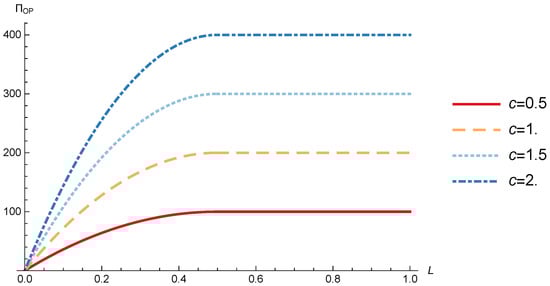 Figure 10 shows the OP profit as a function of L for different values of c. The figure shows how the OP profit increases when the system load increases until . After this point, the profit remains constant with the system load. In addition OP profit also experiments an increase with c for any value of L.