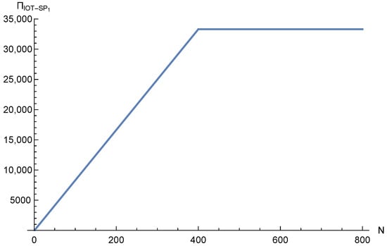 Figure 16 shows the IoT-SP profit as a function of N. The figure shows how the profit increases with N until the OP network is congested. After that, the profit remains constant.